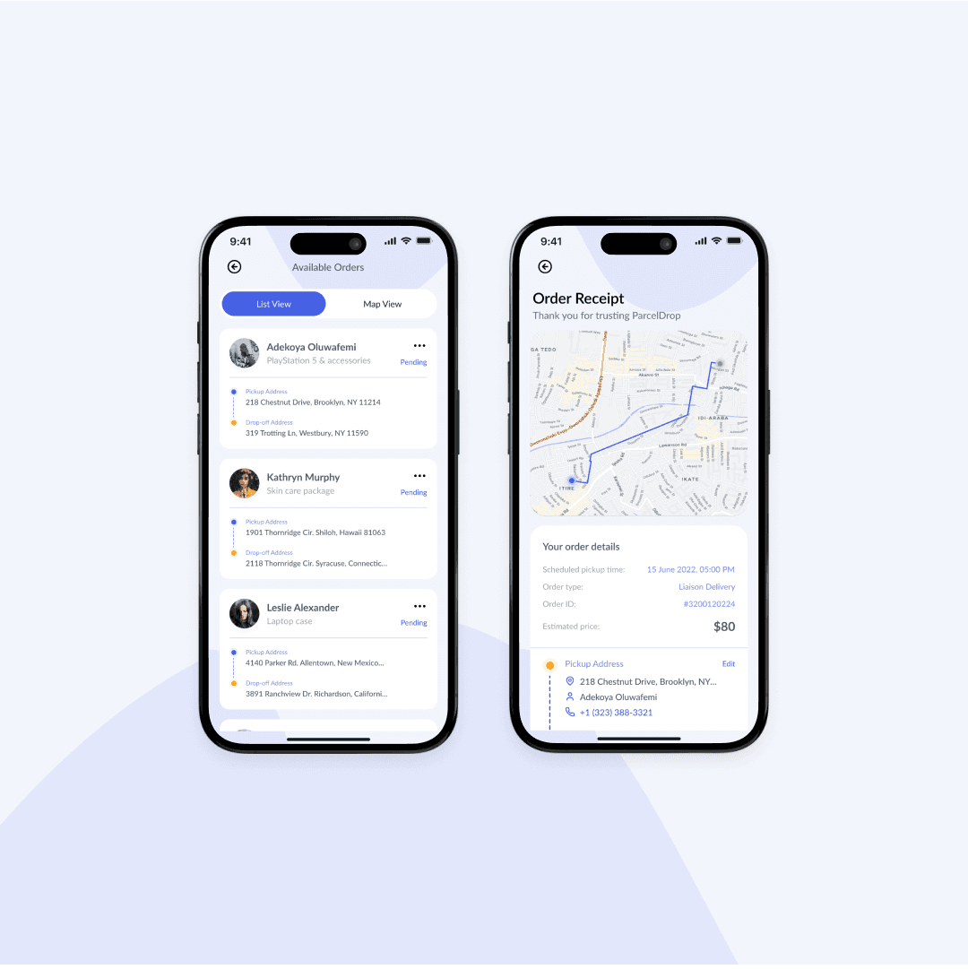 Handoff UX: In inter-state deliveries, ParcelDrop might pick up an item and drop it at a courier, or receive it from one. That in-between stage needed careful design so the user always felt “in the loop.”